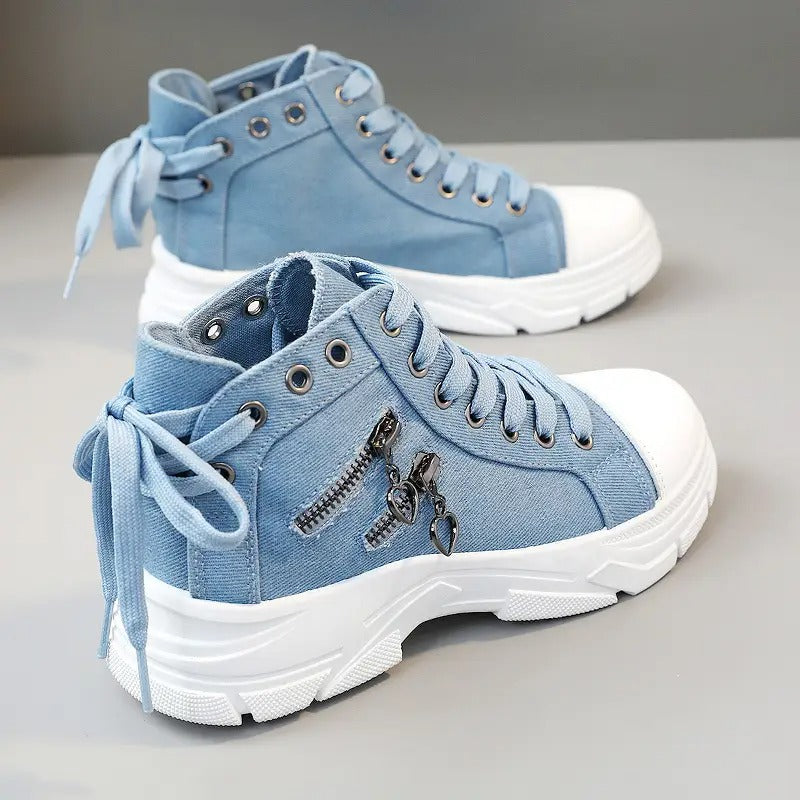 Ces baskets montantes compensées pour femmes combinent style sportif et élégance décontractée. Avec leur talon discret, leur fermeture éclair pratique et leurs lacets classiques, elles offrent un look moderne et polyvalent pour toutes vos activités. Un indispensable pour allier confort, tendance et praticité au quotidien.
