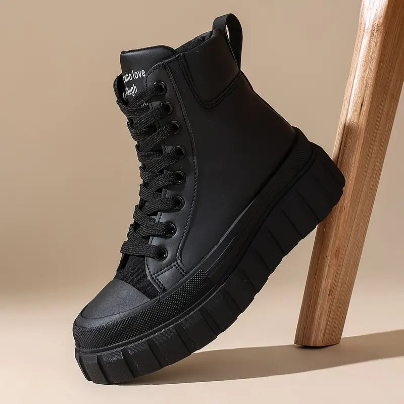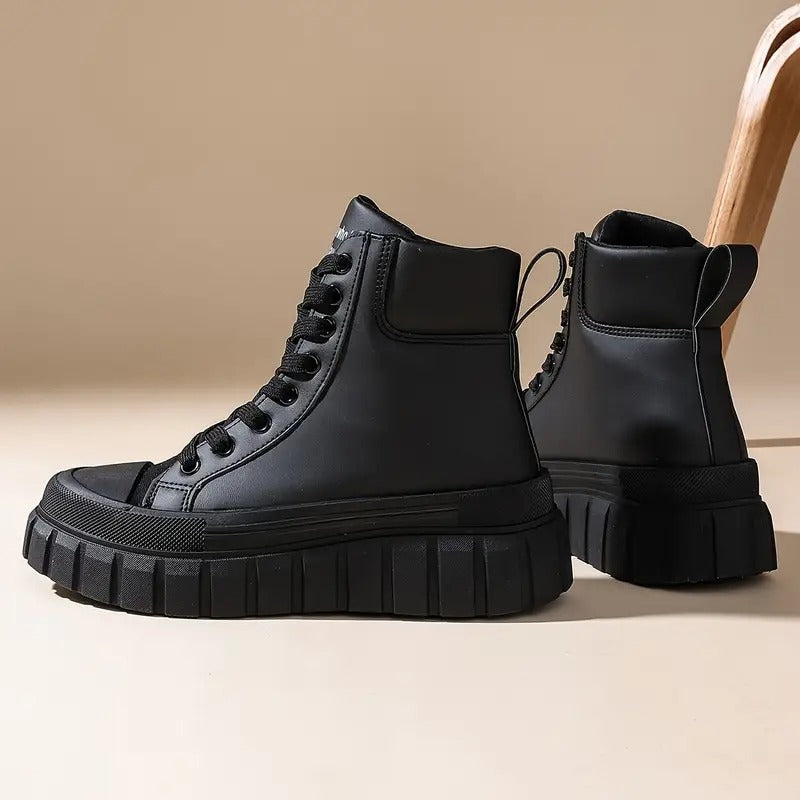 Ces baskets montantes pour femmes, confortables et épaisses, allient style urbain et maintien optimal. Leur design moderne et leur semelle robuste en font une paire idéale pour rester tendance tout en protégeant vos pieds. Un must-have pour conjuguer confort et allure sportive chic.