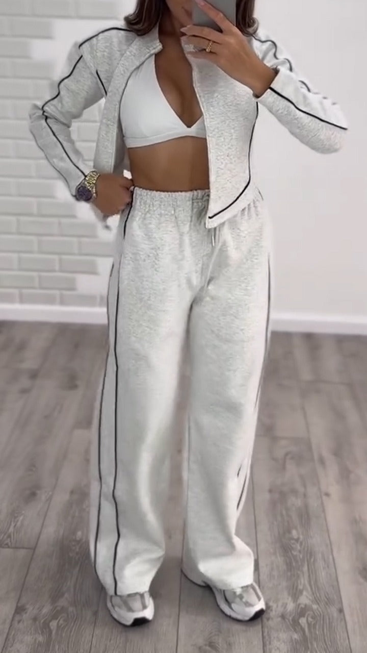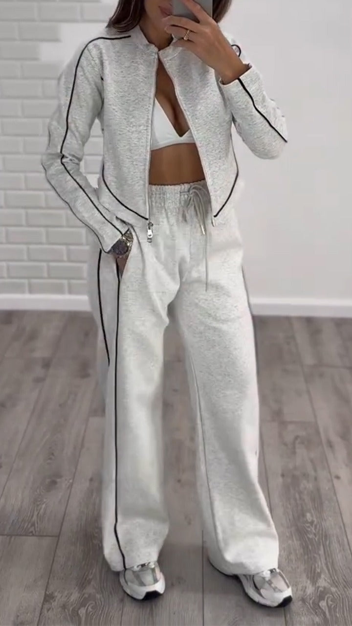 Ensemble décontracté veste et pantalon à fermeture éclair