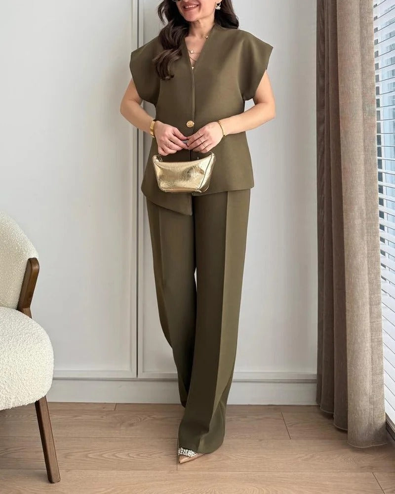Ensemble deux pièces haut et pantalon asymétriques