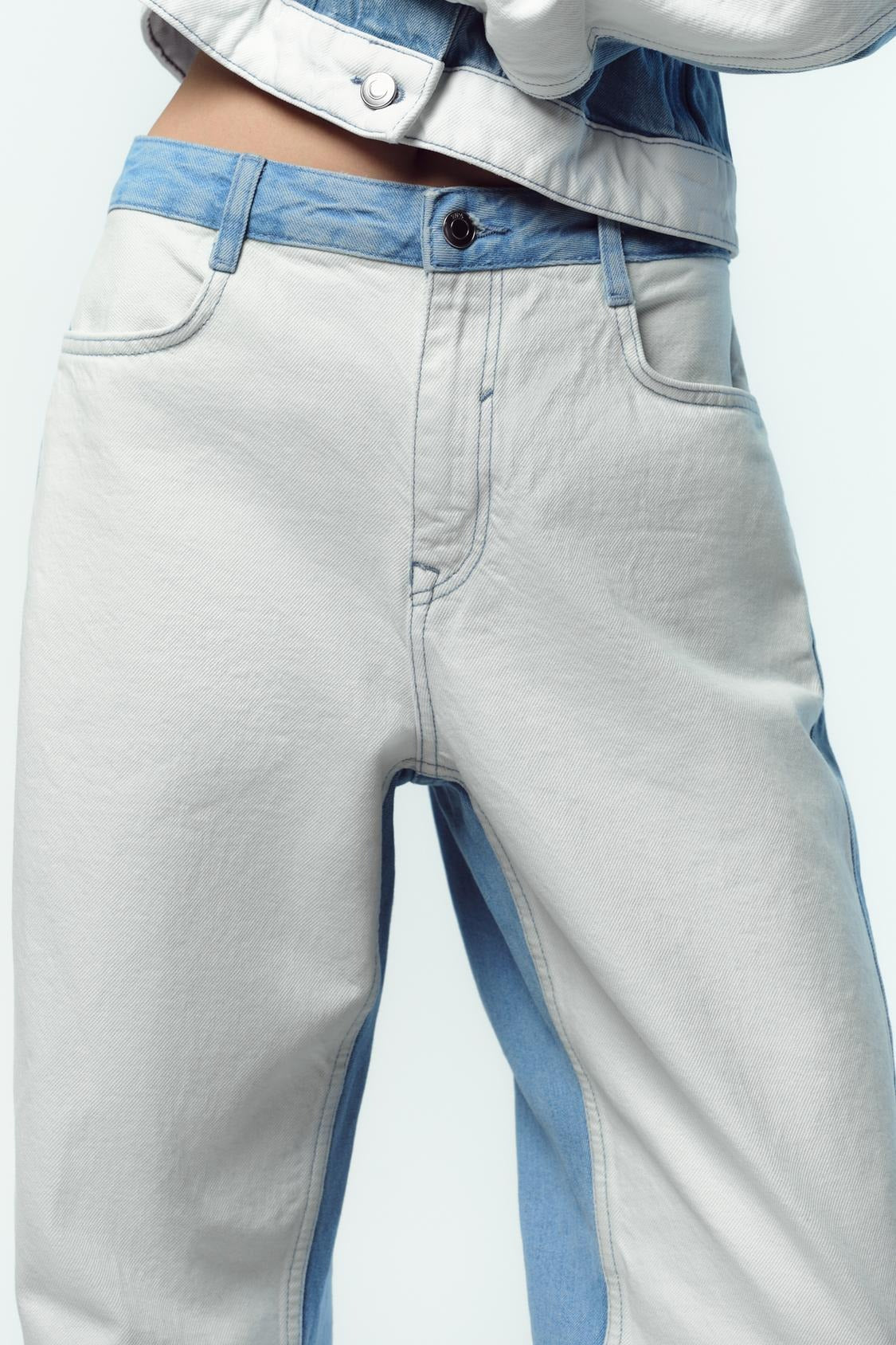 • Empiècements contrastés en denim délavé