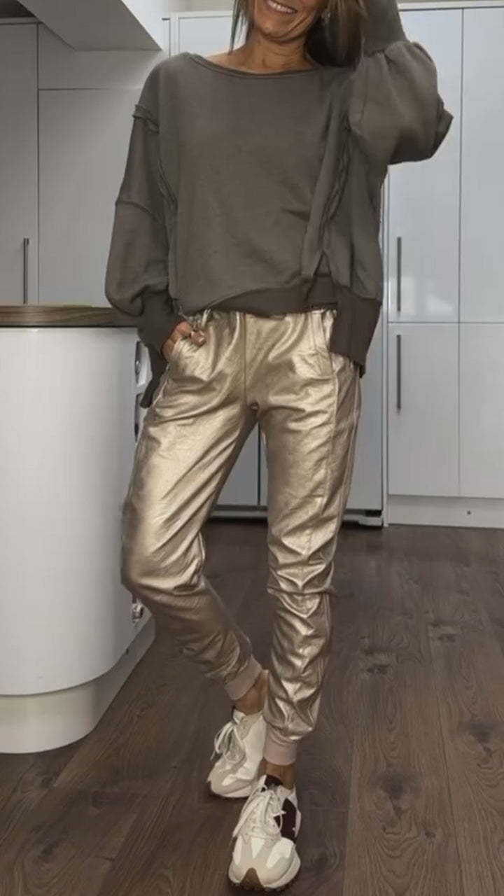 Un équilibre parfait entre décontraction et audace. Cet ensemble combine un haut à col rond simple et confortable avec un pantalon en cuir moderne, créant une tenue à la fois chic et affirmée. Facile à porter au quotidien comme en soirée, il vous assure une allure tendance sans effort.