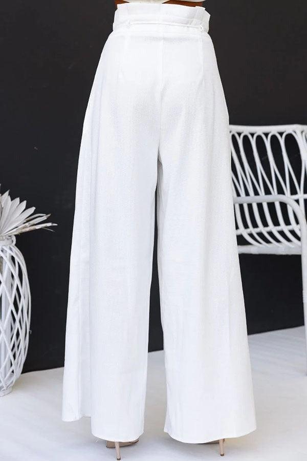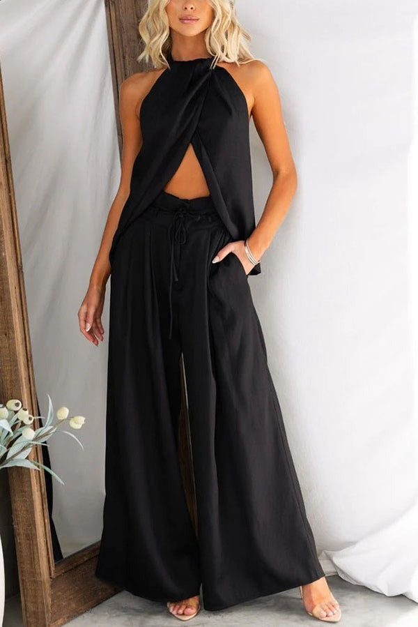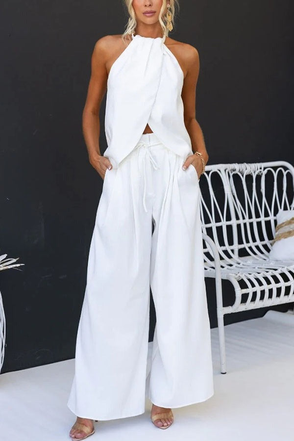Ensemble haut fendu et pantalon taille haute en lin mélangé