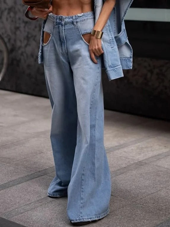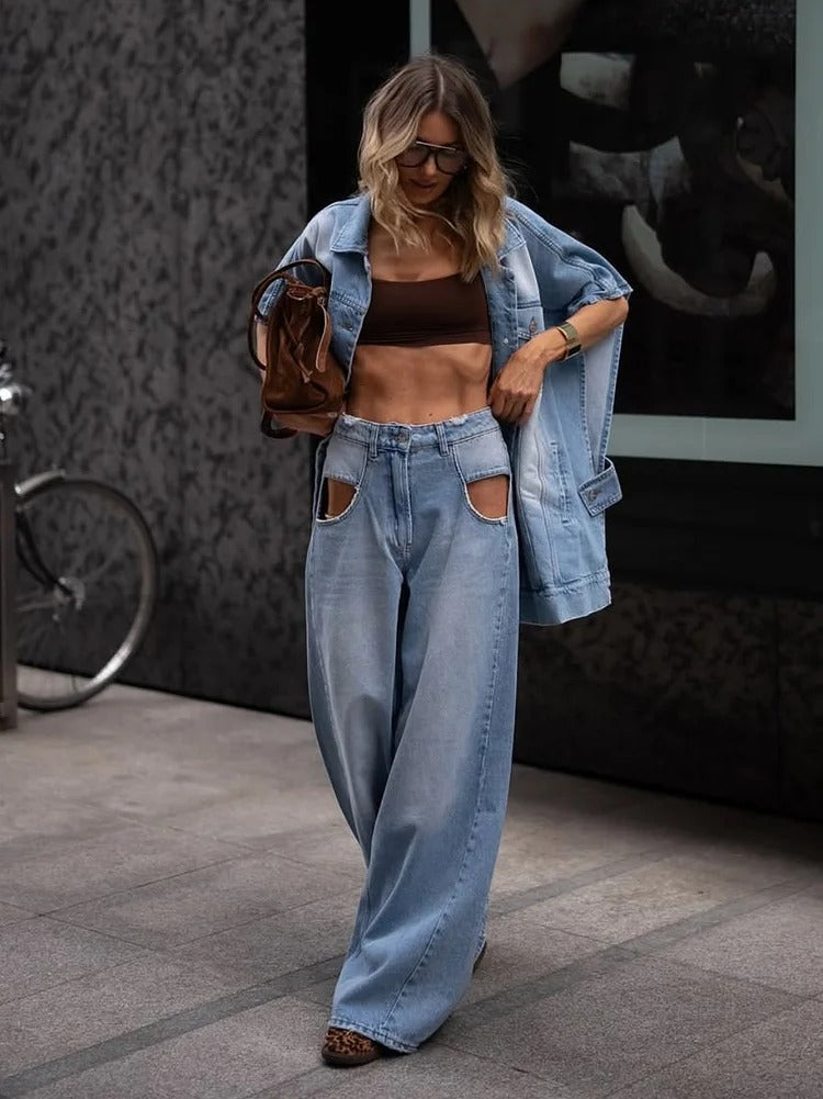 Cet ensemble oversize en denim allie style décontracté et caractère affirmé. La veste ample à poches ouvertes apporte une allure urbaine et tendance, tandis que le jean assorti complète le look avec une coupe confortable et contemporaine. Parfait pour un style streetwear assumé, il se porte facilement au quotidien.
