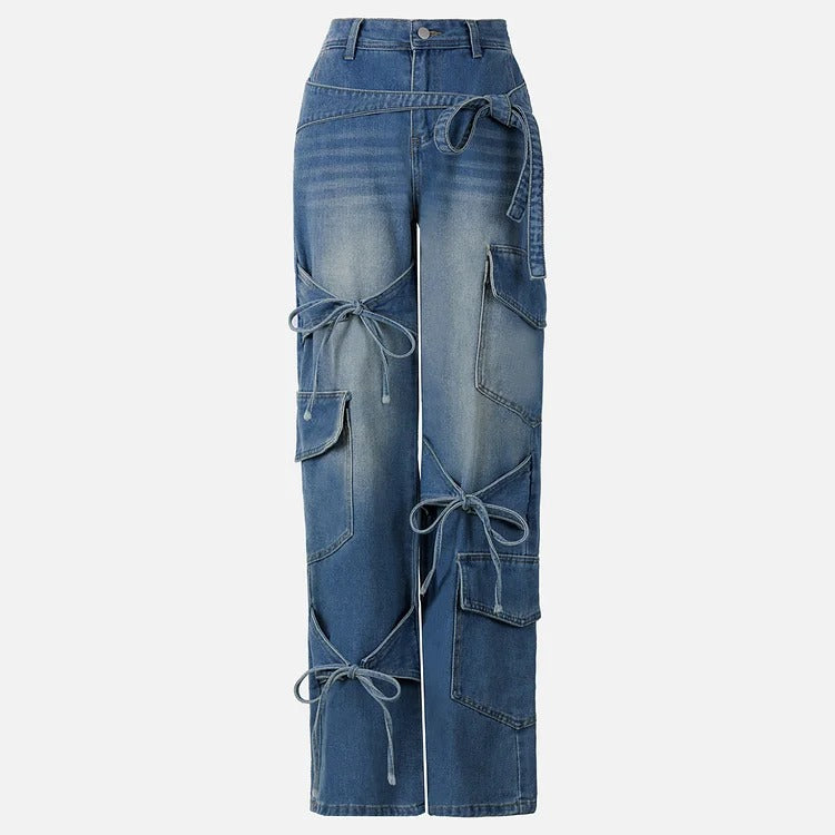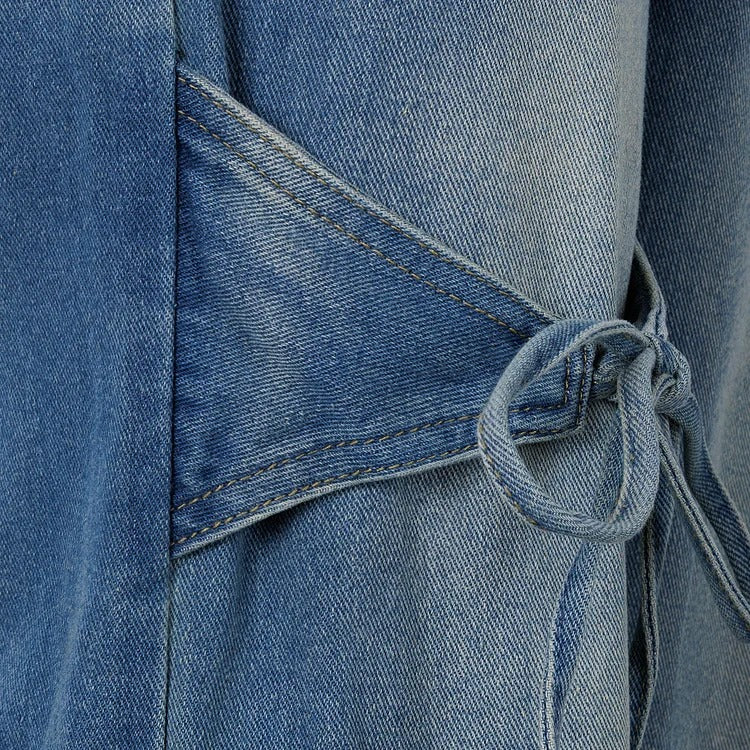 Ce jean utilitaire revisite le classique denim avec une touche féminine et sophistiquée. Sa coupe moderne et sa taille ornée d’un nœud apportent du caractère à une pièce intemporelle. Pratique et tendance, il combine l’authenticité du denim avec des détails élégants, créant un équilibre parfait entre style urbain et allure raffinée.
