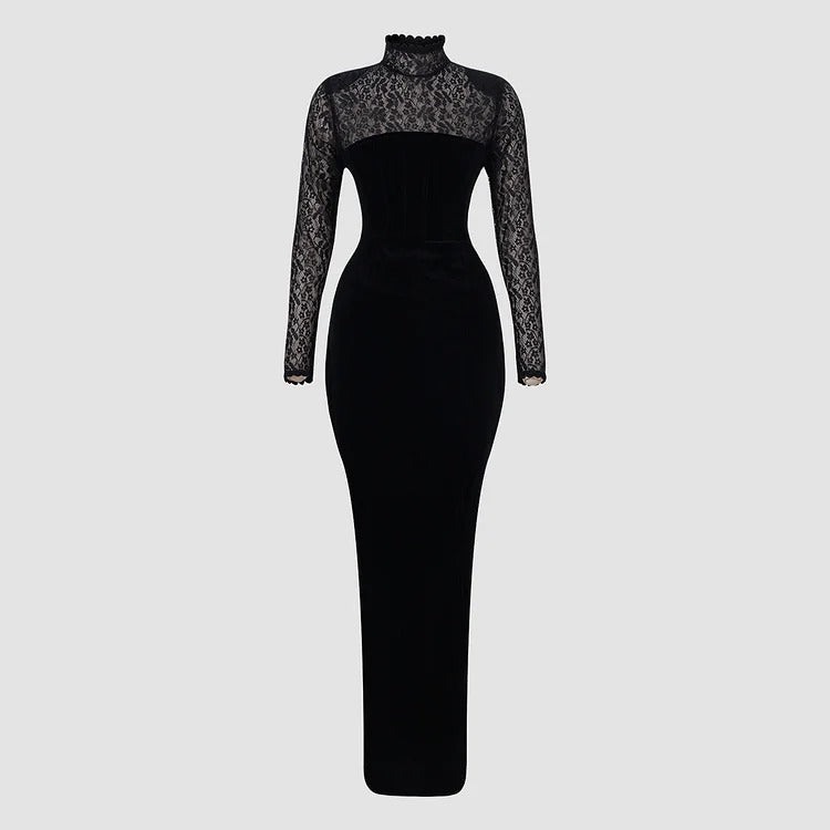 Alliant sensualité et élégance, cette robe noire moulante est idéale pour vos soirées ou occasions spéciales. Le velours apporte douceur et confort tandis que les détails en dentelle ajoutent une touche sophistiquée et féminine. Sa coupe ajustée met en valeur la silhouette, offrant un look chic et séduisant à chaque porté.