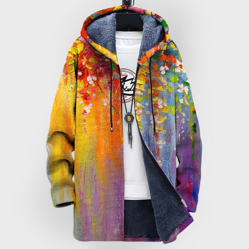 Più di un semplice cardigan: Samanta cattura l’attenzione. Il suo motivo unico, ispirato all’arte, combina audacia ed eleganza, diventando il tuo nuovo tratto distintivo.