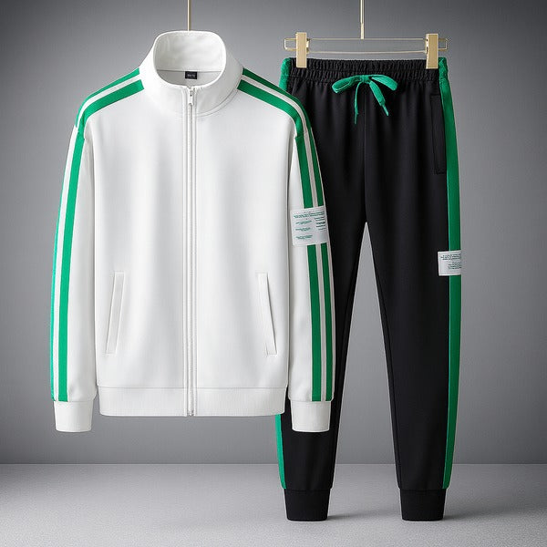 Confectionné en maille douce et performante, cet ensemble offre un look sportif et épuré, avec ses bandes latérales audacieuses qui attirent le regard. Les poignets côtelés et le col zippé maintiennent la forme, tandis que la taille extensible assure un maintien optimal et une liberté de mouvement optimale.