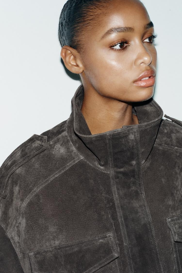 Confectionnée en 100 % daim, cette veste incarne à la fois élégance et caractère. Son col montant et ses manches longues à pattes d’épaules apportent une touche de raffinement moderne. Pratique et stylée, elle se distingue par ses poches à rabat sur la poitrine et sa fermeture zippée dissimulée sous un rabat à boutons-pression.