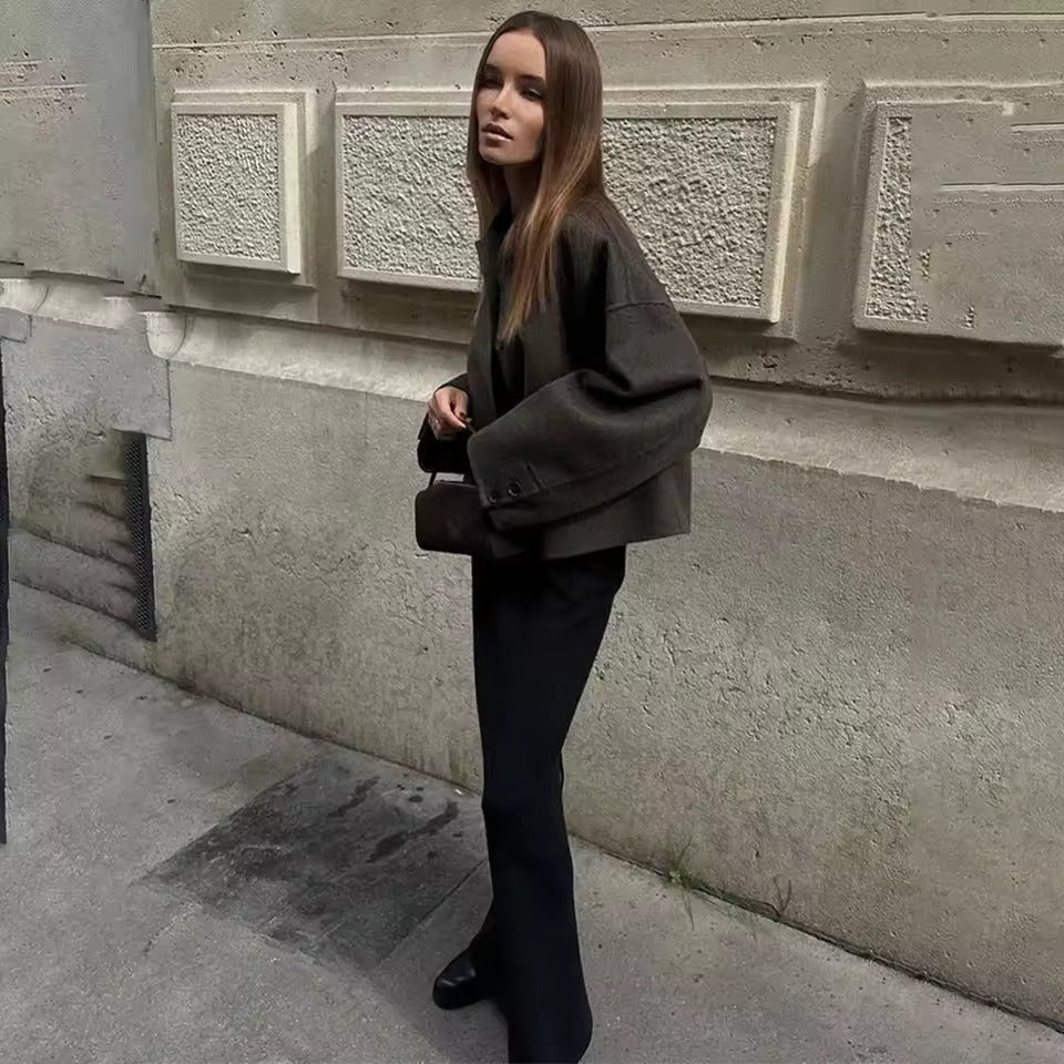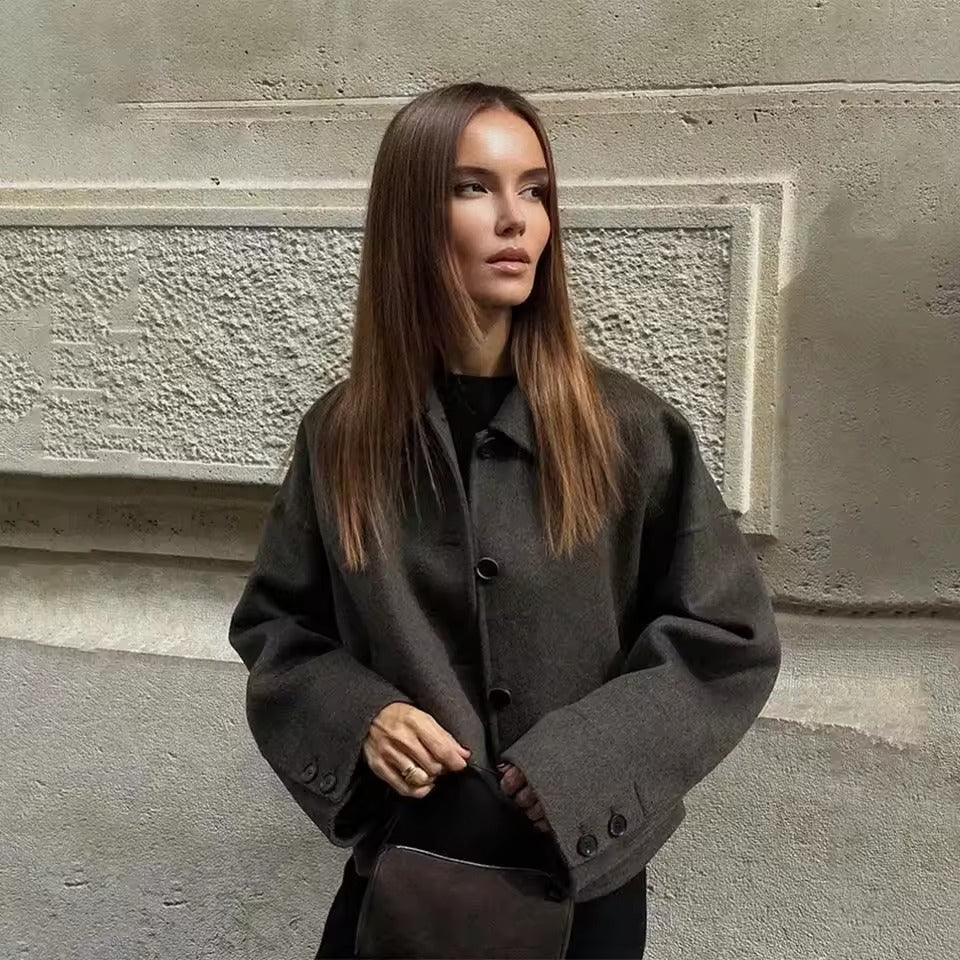 Veste en laine élégante et ample, pensée pour un style raffiné et confortable. Sa coupe décontractée apporte une touche moderne tout en conservant une allure chic, idéale pour affronter les journées fraîches avec élégance.