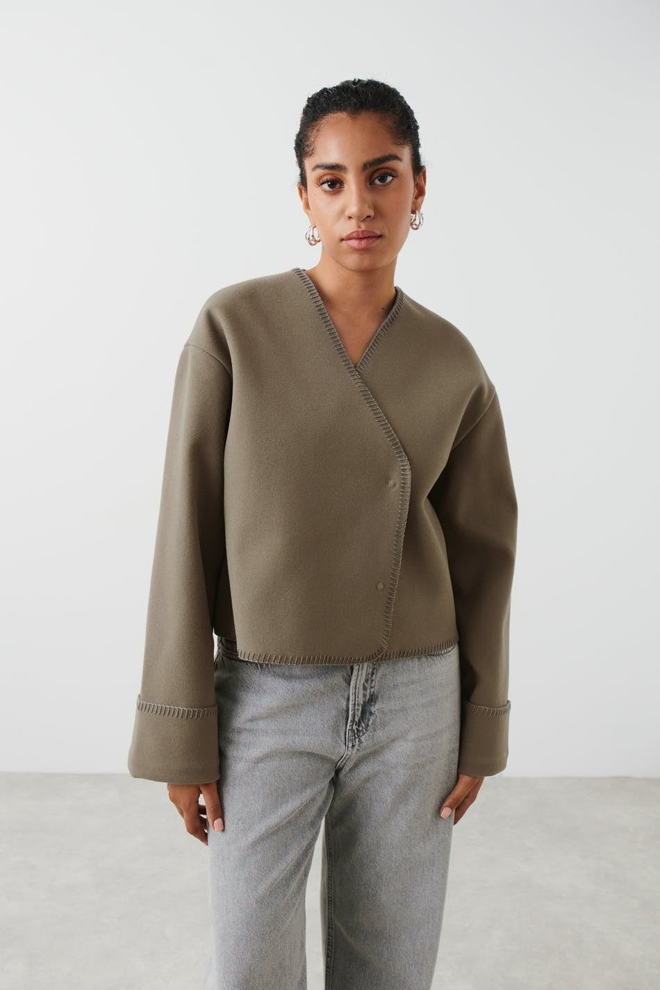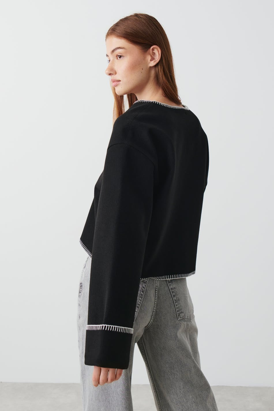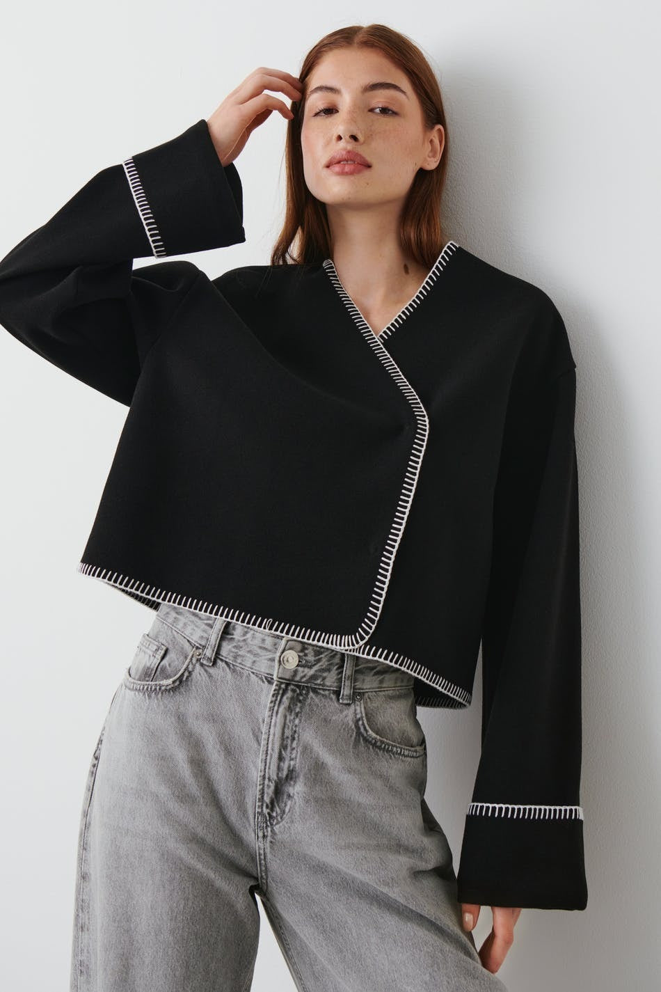 Veste au design raffiné avec finitions en point de feston, offrant une touche d’élégance subtile et délicate. Sa coupe structurée et son détail travaillé en font une pièce idéale pour rehausser une tenue du quotidien ou compléter un look plus habillé.
